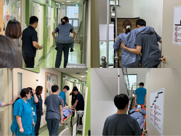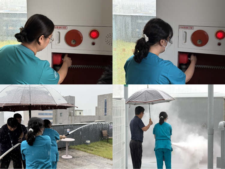 한솔병원 시설관리실, 보안팀, 병동 직원, 경영지원실 직원들이 병동 화재 가상 시나리오로 훈련 전 준비, 화재 대응 절차에 따른 소방훈련을 진행하였습니다.