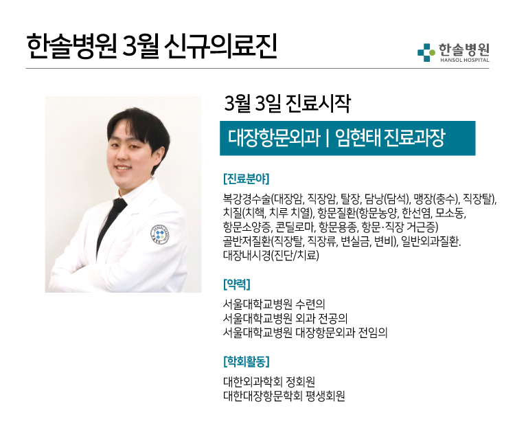 2026년 3월 3일부터 대장항문외과 임현태 진료과장이 진료를 시작합니다.