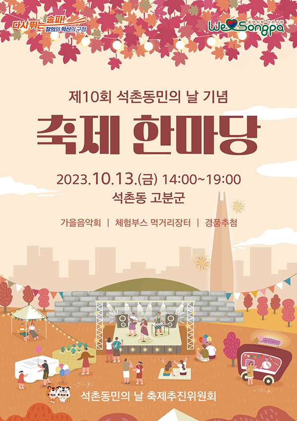 이번 행사에는 석촌동 주민들이 화합하며 애향심을 고취하고 먹거리 장터, 각종 체험 부스와 경품 축제 등 많은 즐길 거리들이 마련되었습니다.