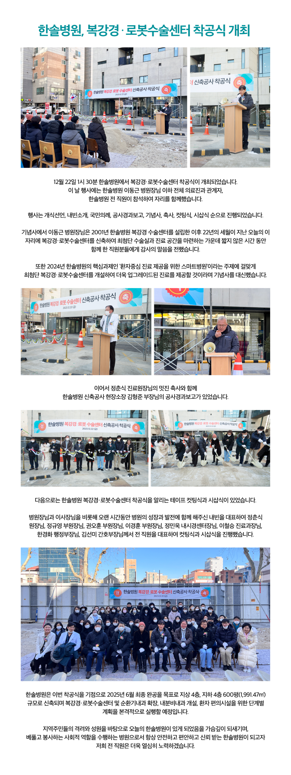 한솔병원 복강경·로봇수술센터 착공식 개최