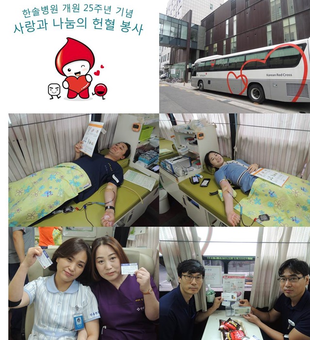 한솔병원이 개원 25주년을 맞이하여 지난 25일 본원에서 사랑과 나눔의 헌혈 봉사를 진행했습니다.