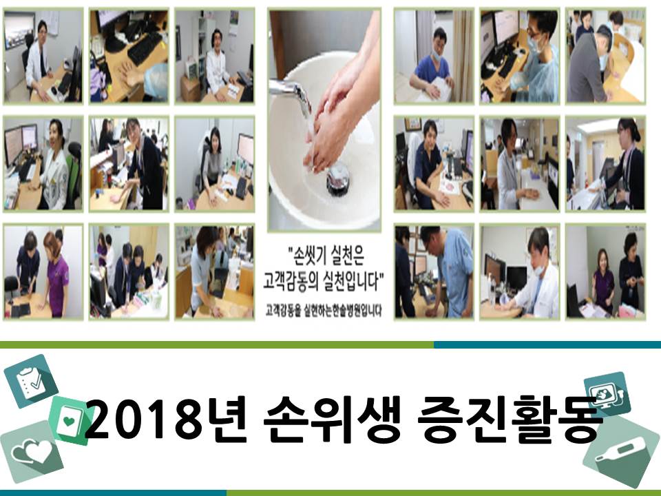 한솔병원에서는 의료관련 감염병 예방 및 관리활동의 일환으로 "2018년 손위생 증진활동"행사를 감염관리실의 주관으로 개최했다.