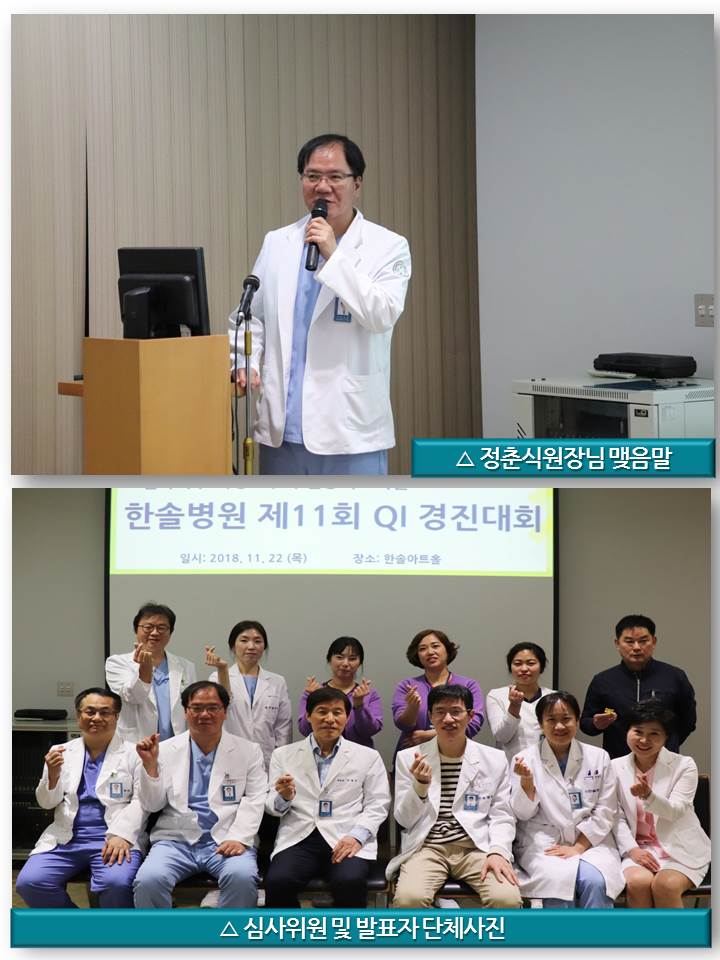 이동근 병원장은 인사말을 통해 "지난 10년 동안 의료의 질향상을 위해 합리적인 시스템으로의 혁신을 추구해 왔다"며, "올해 제 11회를 맞아 환자 안전이 최우선이 되는 한솔병원을 위해 끊임없는 연구와 변화를 추구하는 혁신적인 QI활동이었기를 기대해본다"라고 말했습니다.