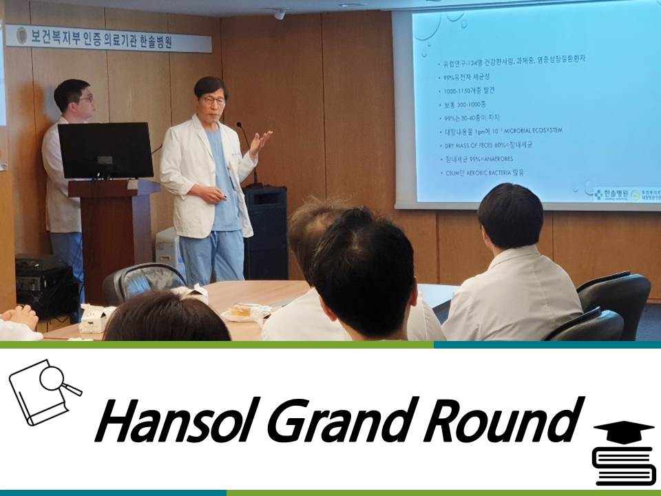늘 최고의 앞선 의술을 제공하기 위해 노력하는 한솔병원 의료진들의 노력으로 마련되는 자리인데요.^^ 이번 Hansol Grand Round에서는 한솔병원 이동근 병원장의 gut microbiota 장내세균총에 관한 내용을 주제로 토론을 나누었습니다.